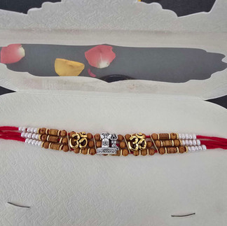 Invoke divine blessings with Rakhis featuring Om, Shivling, and Ram motifs—perfect for spiritually inclined siblings.